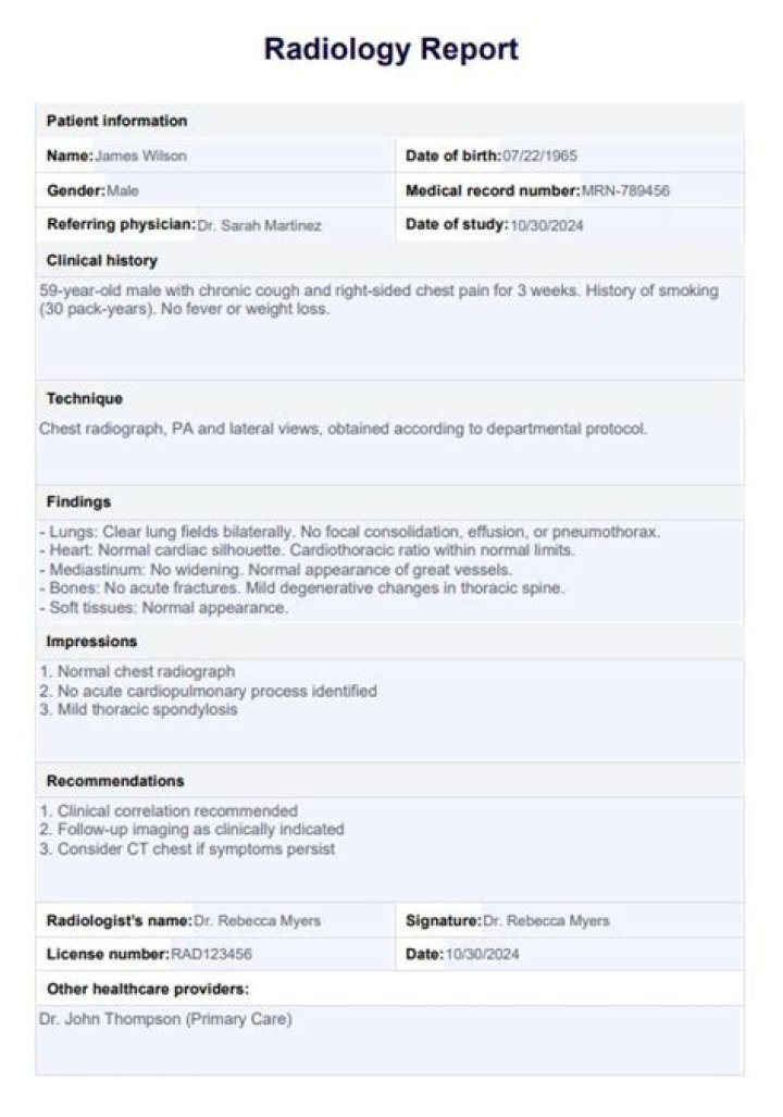 What does a radiologist report look like?